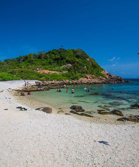 Trincomalee is a coastal city in eastern Sri Lanka, renowned for its stunning beaches, natural harbor, and historical sites. It features beautiful attractions like Koneswaram Temple and Fort Frederick. The area is also famous for snorkeling and diving, particularly at Pigeon Island, making it a popular destination for nature lovers and beachgoers.